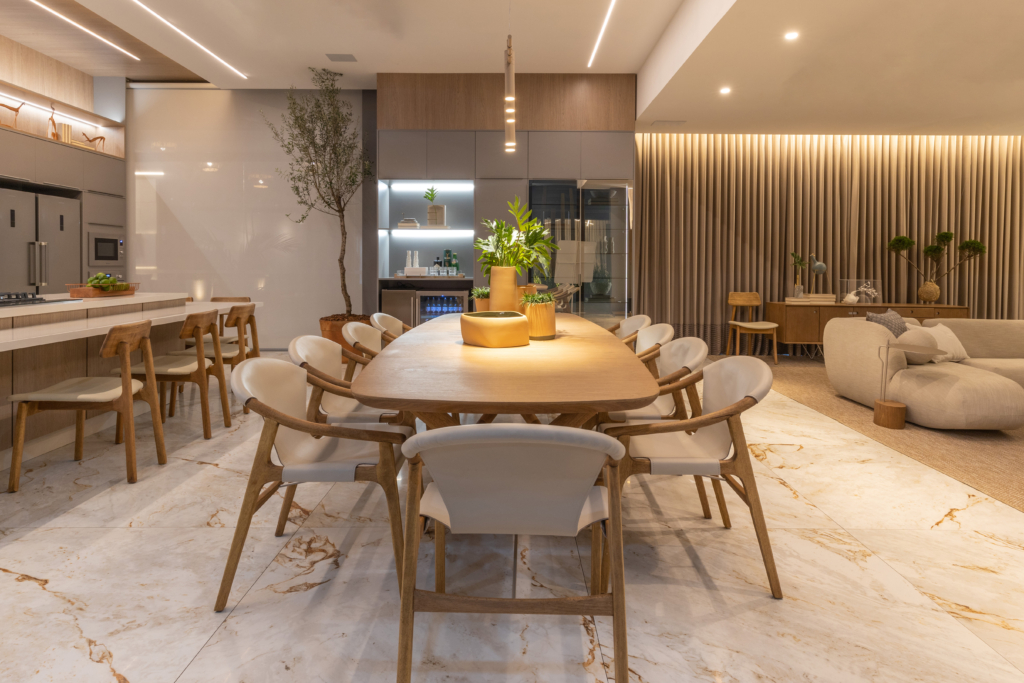 Você pode optar em ambientar sua mesa de jantar, bancadas, ilhas e entre outros ambientes que você preferir.