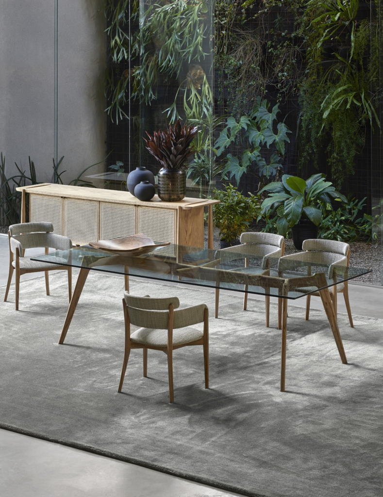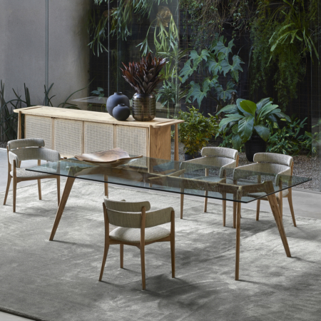Uma peça delicada, sinuosa e rica em detalhes. Extremamente confortável, pode ser usada no escritório, no quarto, em espaços comerciais, mas reina absoluta mesmo é em salas de jantar.